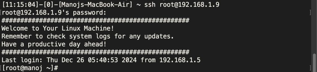 The most common method for displaying a welcome message is by modifying the /etc/motd (Message of the Day) file. This file is read and displayed to users when they log in to the system. Follow these steps:
